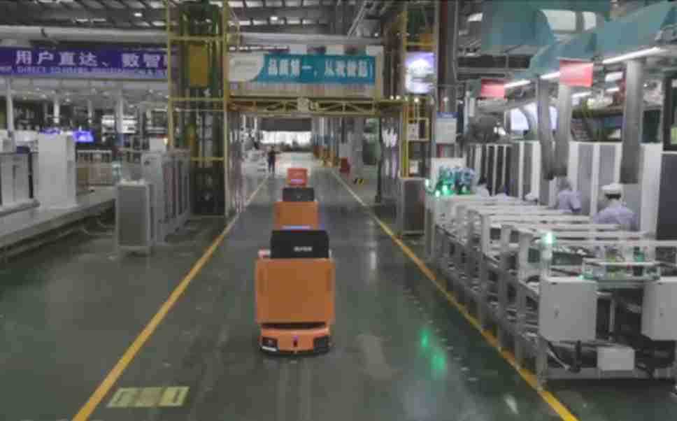为车载冰箱物流配送打造的智能解决方案,,包含产中物流通过潜伏举升AMR搬运至线边,,,产后成品物流智能仓储,,,流程包含产中物流智能齐套入库,,,,线边安灯叫料AMR智能配送至线边,,成品入库、、、、出库,,,通过无人堆高车机器人,,,,智能仓储管理替代人工作业管理,,,实现更高存储、、、、更高效率、、、、更具柔性化的解决方案。。。