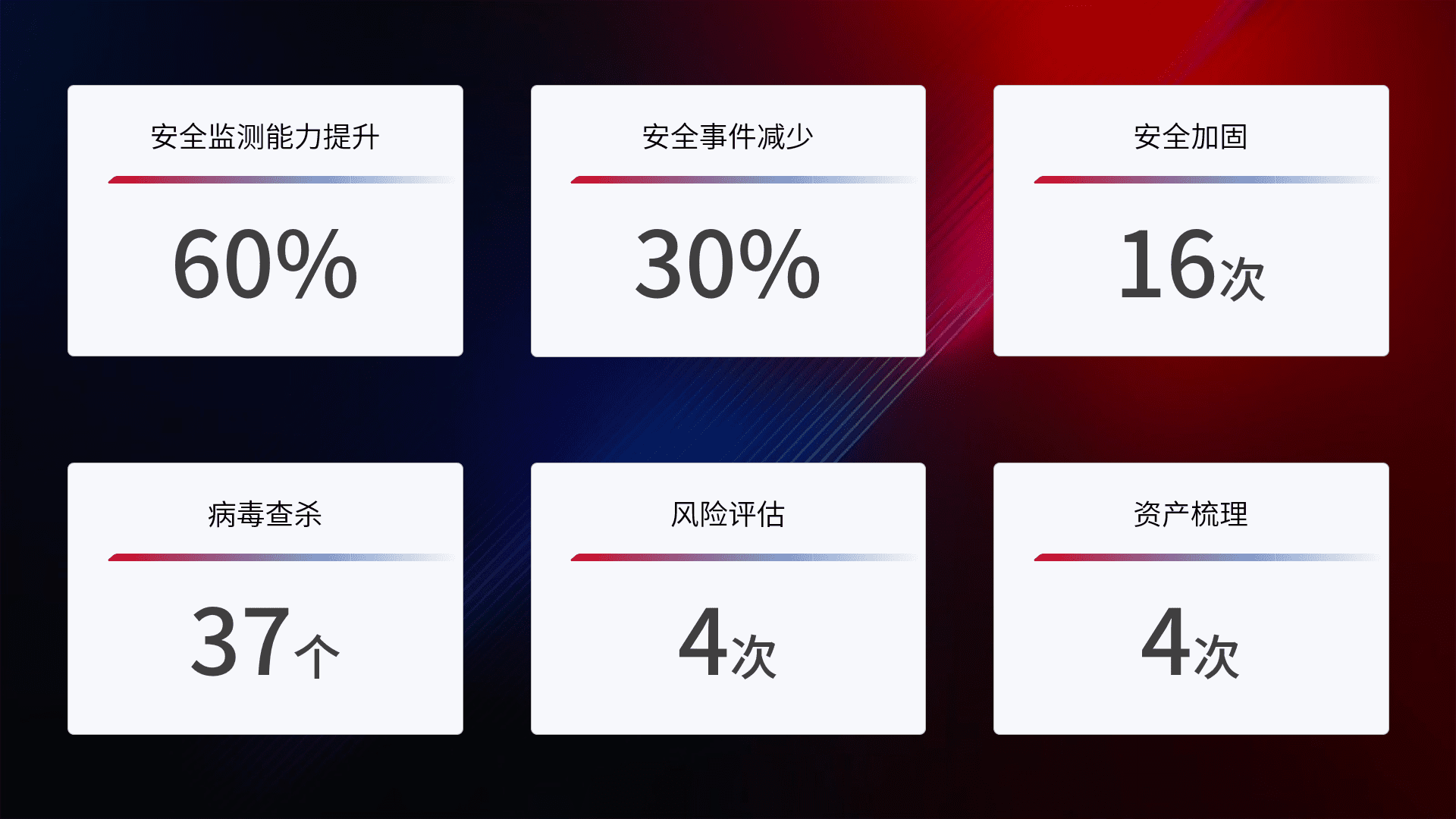 风险评估与技术培训:执行网络资产的季度风险评估,,,,包括漏洞扫描和基线核查。。为员工提供定期的安全意识及技术培训,,,提高整体安全防护能力。。